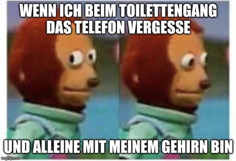 Hoffentlich passiert das niemanden, denn ich weiß noch, wie es war, als wir keine Handys hatten und auf dem Klo Stunden damit verbracht haben, Duschgel-Verpackungen zu studieren. Hat uns nicht geschadet, aber auch nicht wesentlich schlauer gemacht ... ...