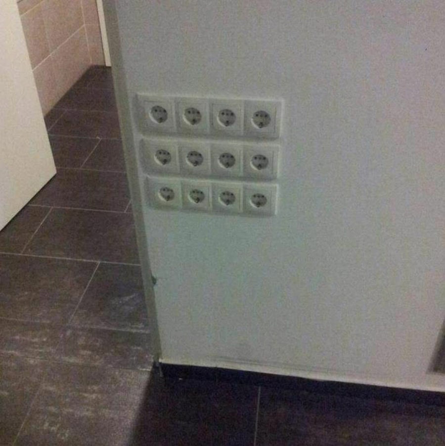 Verstehe ja ohnehin nicht, warum nicht in jedem Raum immer jede Wandseite so aussieht. Dabei wissen wir doch, dass Steckerleisten direkt aus der Hölle stammen und idealerweise gar nicht erst benutzt werden sollten ... was man halt auch nur machen ...