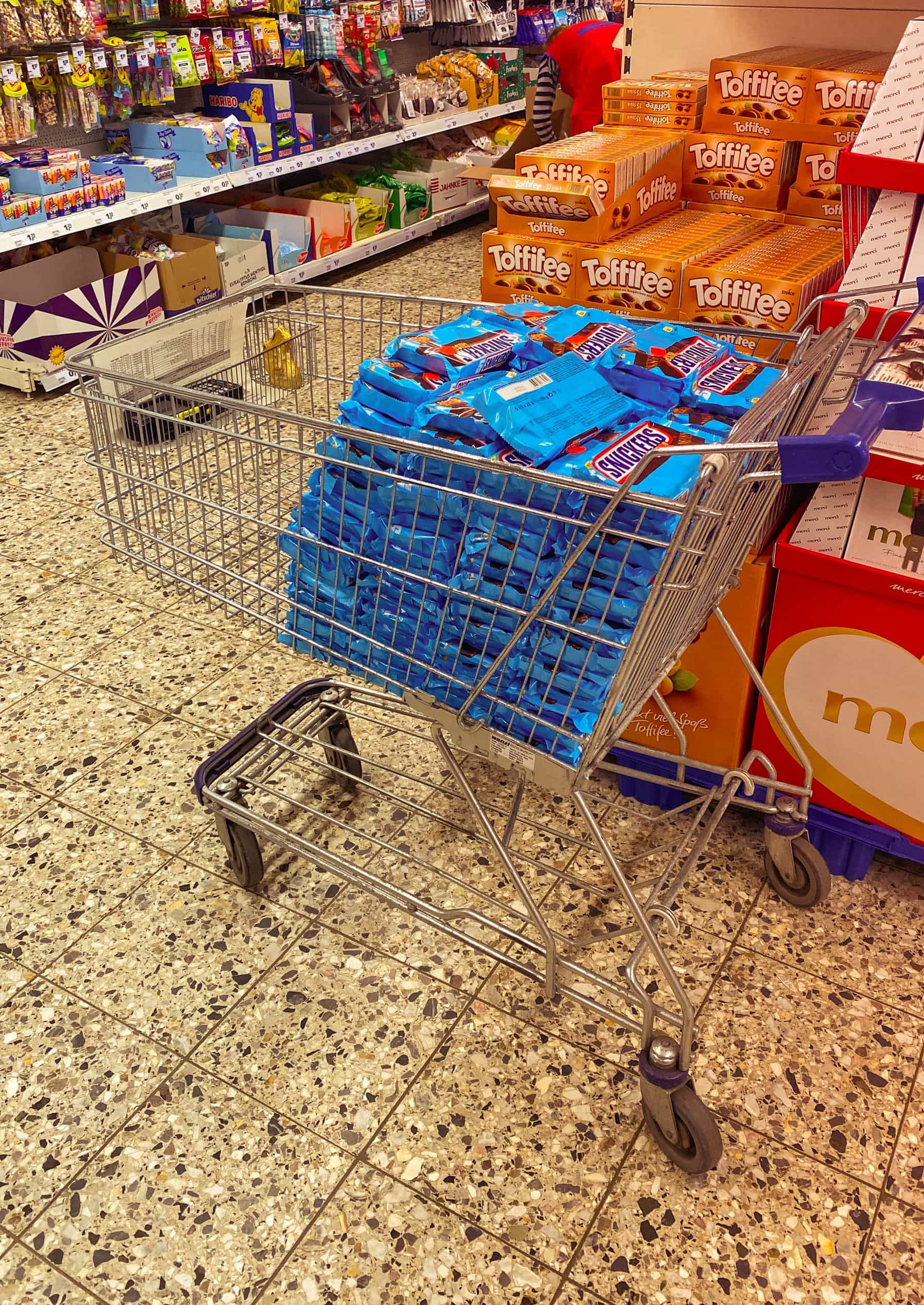 War natürlich nicht so, aber ich hab beobachtet, dass doch recht viel Bewegung drin ist, sodass ich mich dann doch 10 Minuten angestellt hab und in den Laden konnte. Smart fand ich dabei, die Anzahl der Personen durch die kontrollierte Ausgabe von Einkaufswagen zu steuern – ohne Wagen durfte man nicht rein, einen Wagen hat man nur bekommen, wenn jemand den Laden verlassen hat.