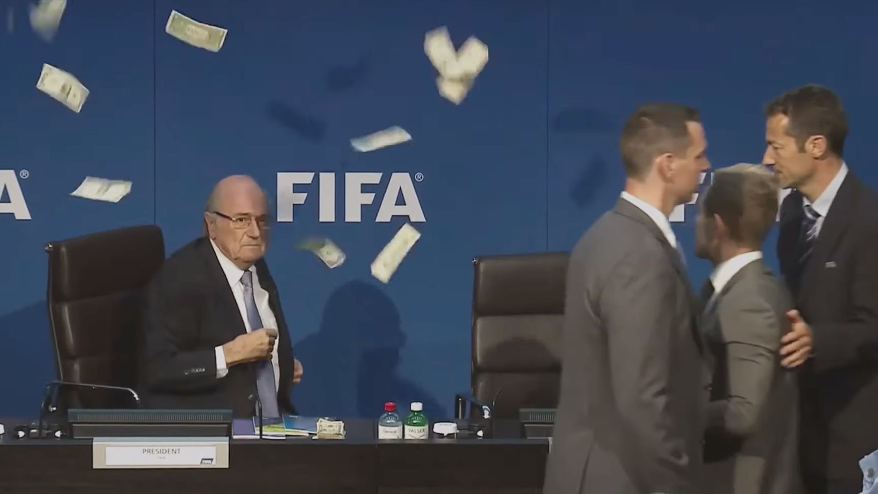 Zwiegespalten bin ich bei so Dokus wie der nachfolgenden. Darin geht es um die Machenschaften der FIFA, der wohl höchsten Instanz im Fußball. Und Fußball ist ja fast immer toll ... wenn da halt nicht die FIFA wäre, wie sie jetzt ist. Denn wenn man heute irgendwas davon liest, ist es zu 97,3% nicht Gutes – entweder ist mal wieder herausgekommen, dass sich ein paar ohnehin schon steinreiche Fräckels die Taschen noch voller gemacht haben oder mal wieder eine unsinnige Entscheidung in Sachen WM-Vergabe stattgefunden hat.