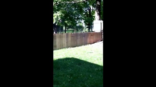I literally had JUST built this fence to keep Stella in the yard and was admiring it.....