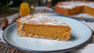 - Im heißen Ofen ca. 45-50 Minuten lang backen. Den Kuchen aus dem Ofen nehmen, mindestens 20 Minuten lang abkühlen lassen und vor dem Servieren mit dem etwas Zimt bestreuen.