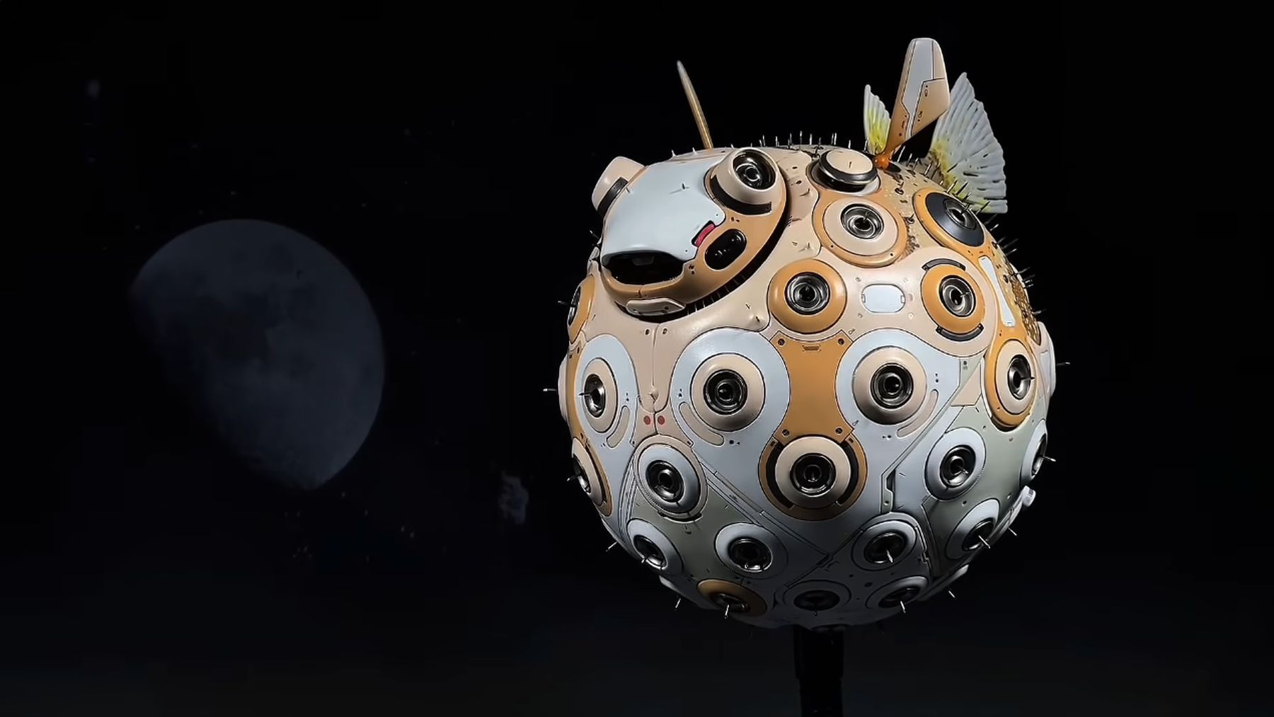 Bei TMO STUDIO bekommt das ganze Thema noch mal eine andere Facette, denn hier wird aus einer simplen Plastikkugel und jeder Menge mehr Plastik am Ende eine Art Mech-Kugelfisch. Der kann ehrlicherweise nicht viel, außer gut auszusehen. Das dann aber auch wirklich gut: