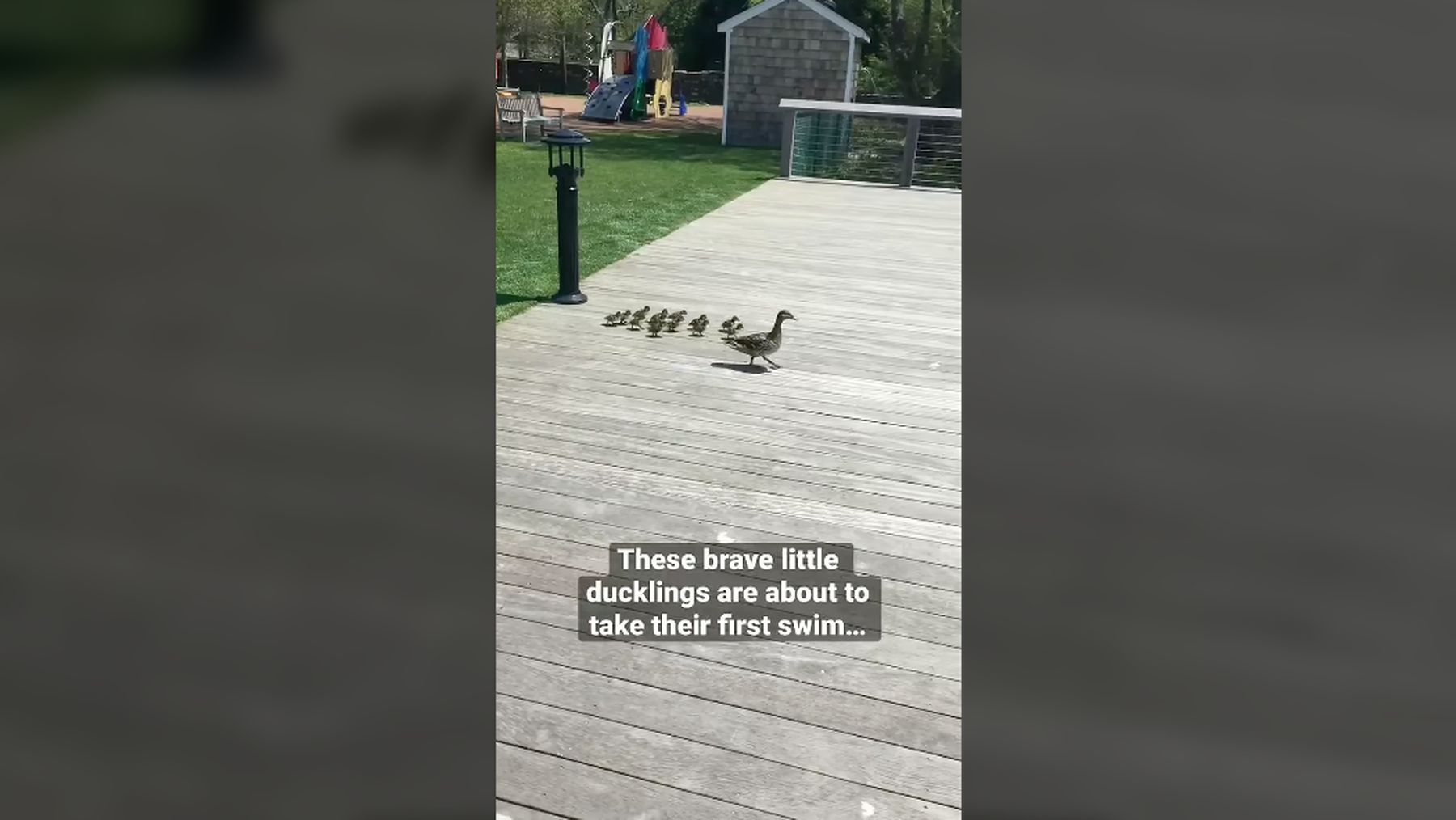 Zudem halte ich das hier für ein besonders gutes Video für einen Montag, denn Montage sind nach wie vor schwierig und da gibt es eben nichts Besseres zu sehen, als kleine Entenküken, den jeder Menge Mut abverlangt wird, damit sie das erste Mal ins Wasser gehen:
