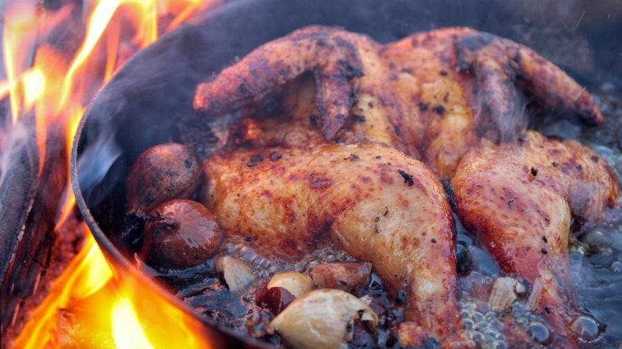 Nur ein Brathähnchen auf offenem Feuer
