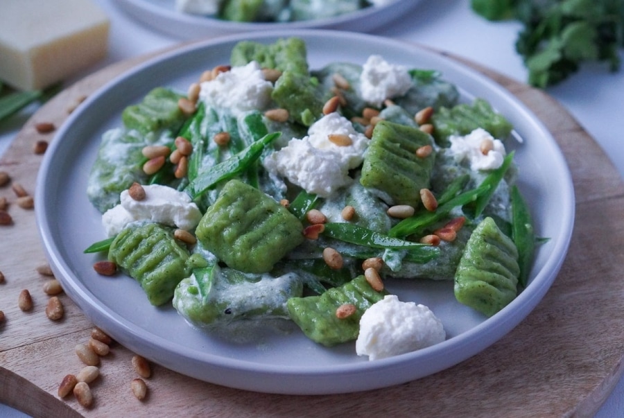 Line kocht Kräutergnocchi mit Ricotta, Zuckerschoten und Pinienkernen