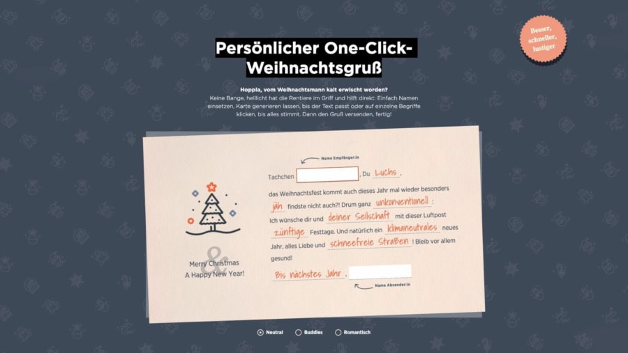 Der persönlicher One-Click-Weihnachtsgruß
