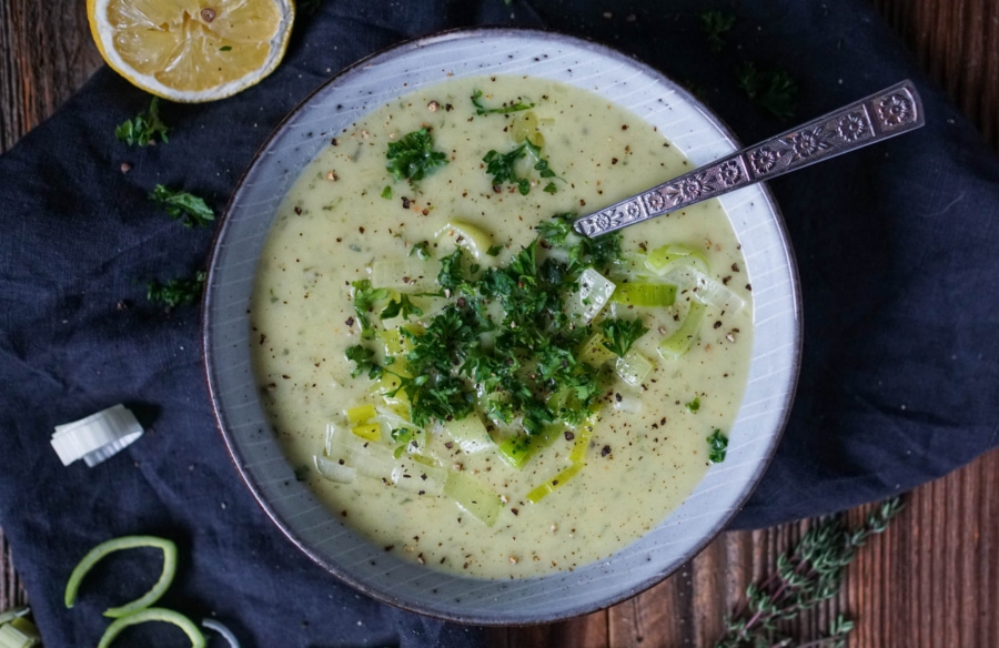 Line kocht Kartoffel-Lauch-Suppe mit frischen Kräutern