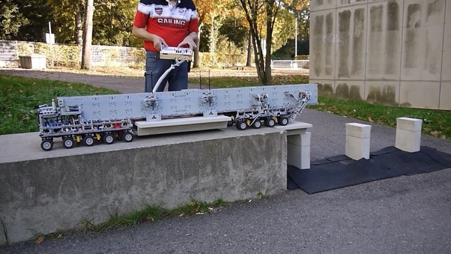 Eine Brückenbaumaschine aus LEGO Technic gebastelt