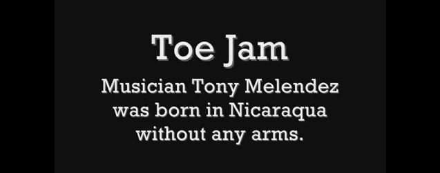 Tony wurde in Nicaragua geboren, ohne Arme. Unvorstellbar, wie man mit so einer Behinderung überhaupt leben kann - Tony scheint es aber ganz gut zu können. So gut, dass er sogar Gitarre spielen kann - mit seinen Füßen. Und das sogar so gut, dass er 1987 "never be the same" vor Papst Johannes Paul II spielte, mittlerweile geht er sogar als Vollzeitmusiker auf Tour.